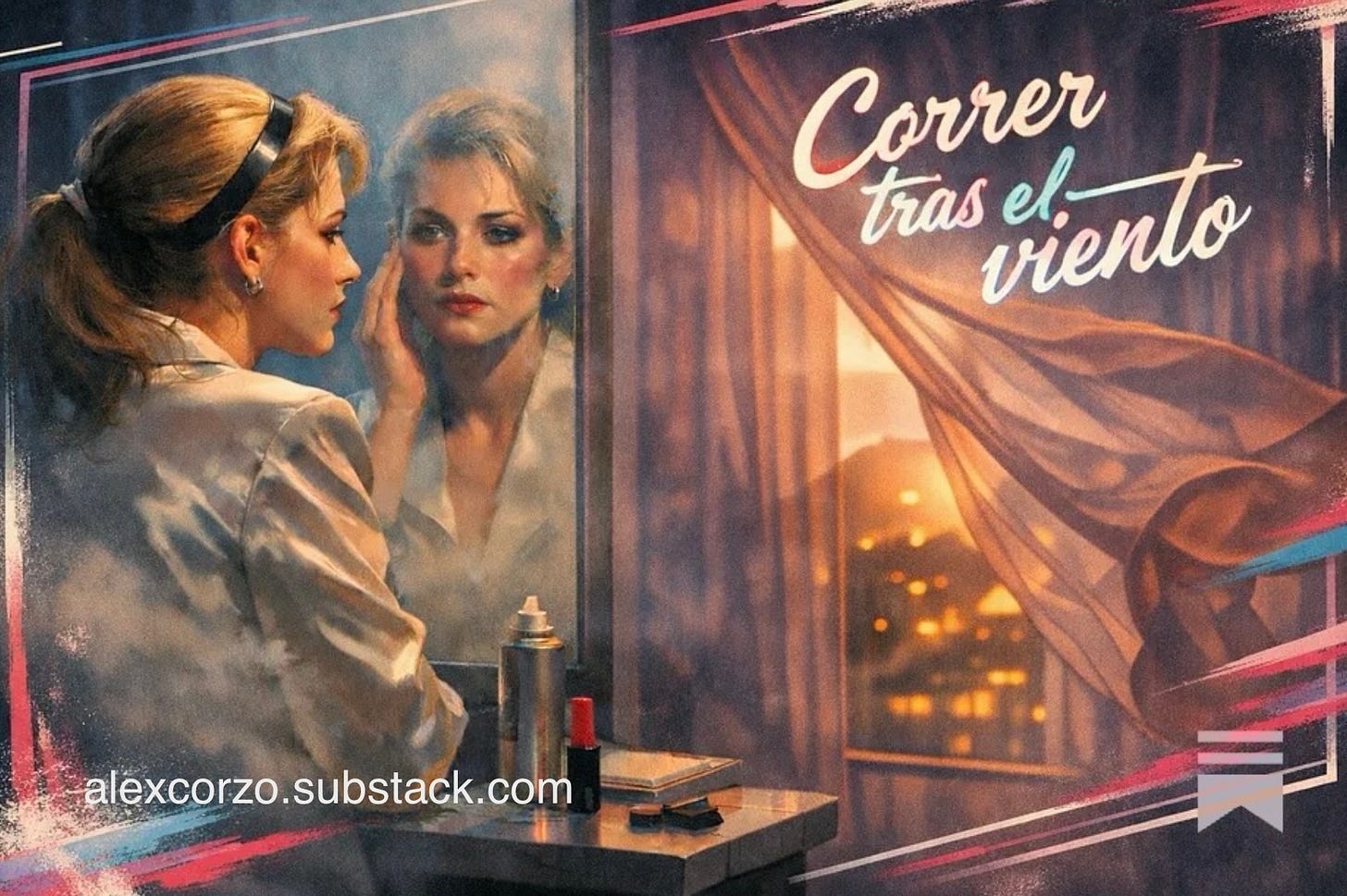 A mediodía, bajo con hambre de aire fresco. Escaparates rebosan de maniquíes femeninos con suéteres holgados, sacos amplios con hombreras que parecen alas y mallas con calentadores en las pantorrillas. Un vendedor me ofrece una cinta plástica para el cabello. La compro. El plástico cruje como un recuerdo de infancia: el pan quemado de mamá, la risa simple de mis hermanos, el abrazo sincero de papá. Me hago una coleta. Un pequeño gesto de insurrección.